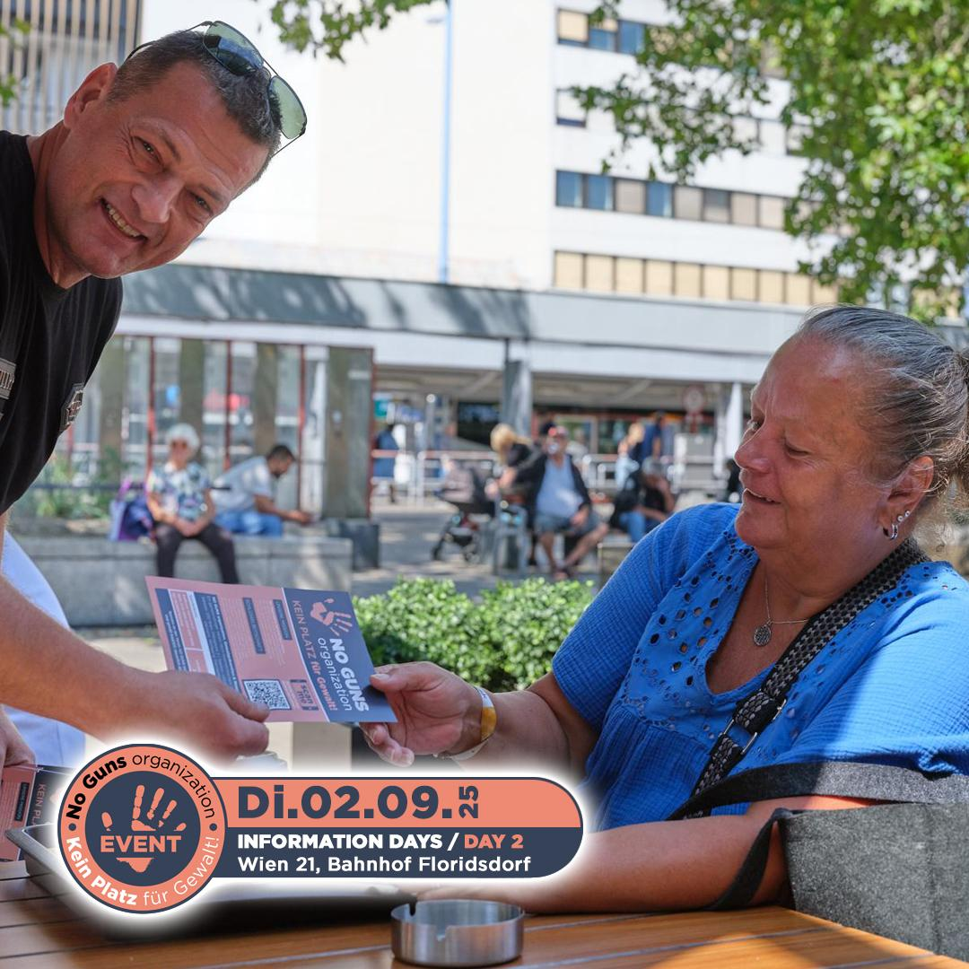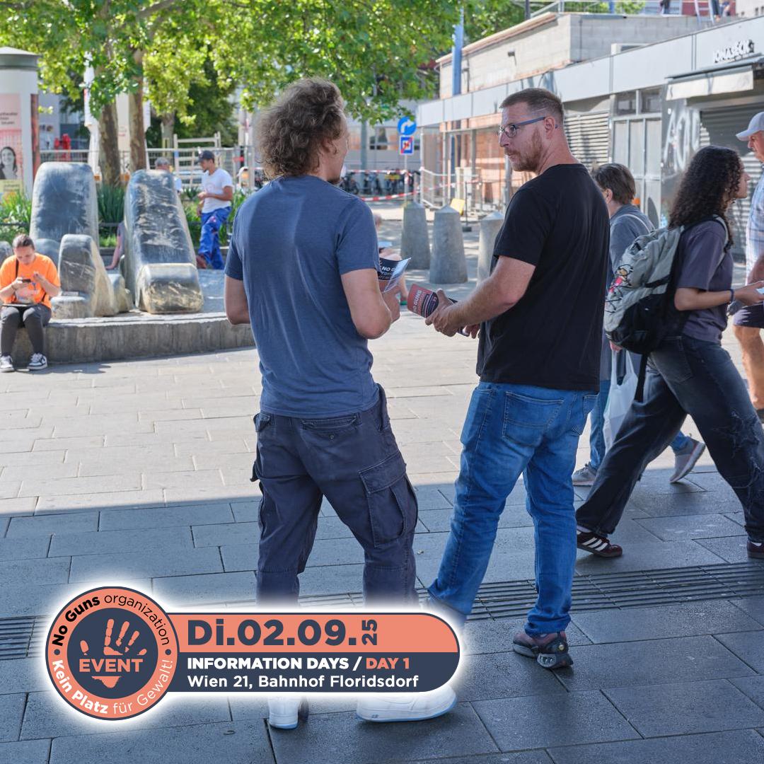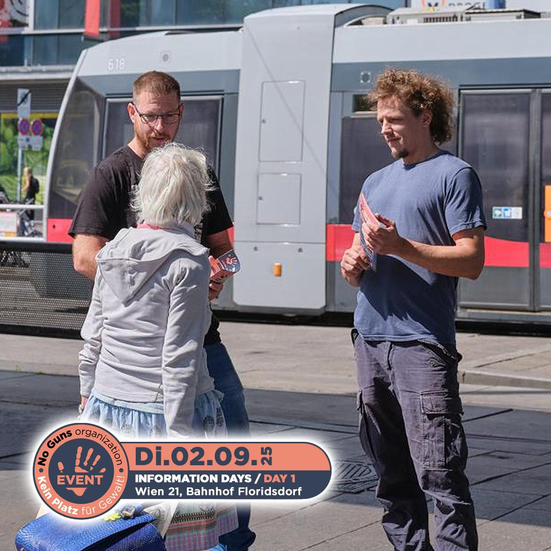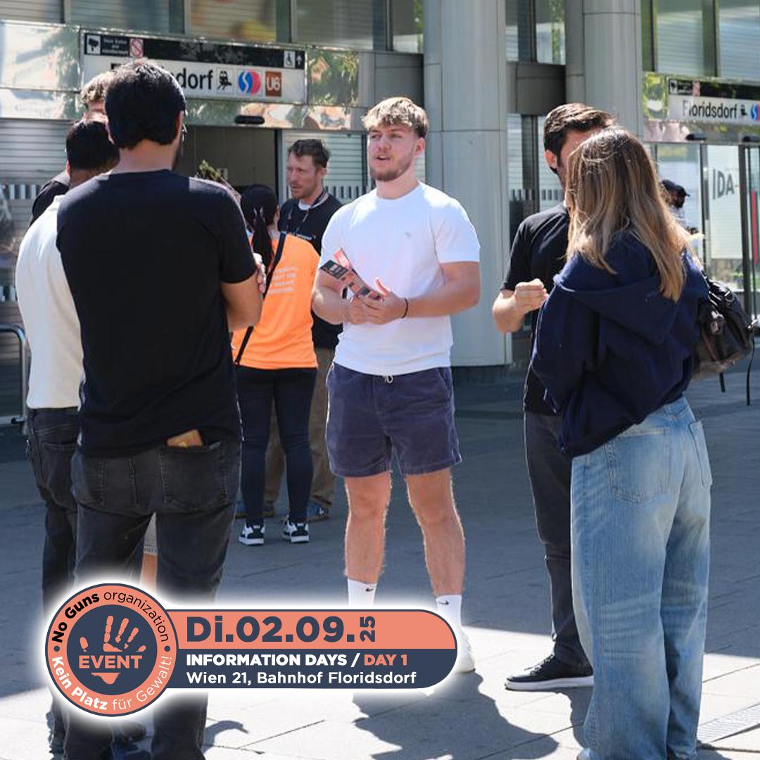Am 2. September 2025 fand der erste Informationstag der no guns organization statt. Engagierte Freiwillige waren am Bahnhof Floridsdorf im 21. Bezirk von Wien unterwegs. Mit Flyern und persönlichen Gesprächen machten sie Passantinnen und Passanten auf unsere Organisation aufmerksam und informierten über unsere wichtige Arbeit.